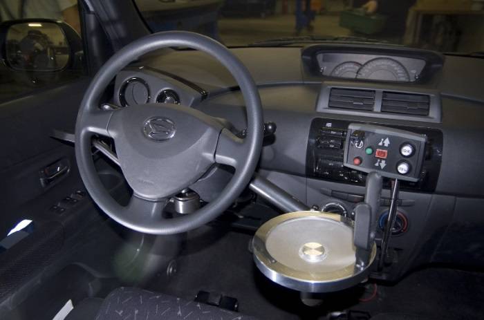 Ce dernier fonctionne grâce à une poignée posé un plateau lui-même situé à côté du volant et avec lequel on peut effectuer un mouvement rotatif permettant de guider le volant en toute sécurité.